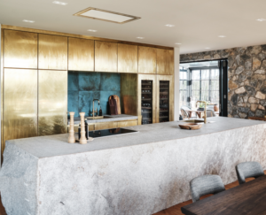 Stenpriset 2023 tilldelades Josefine Kastberg och Arkkas Arkitekter för gestaltningen av Skogsvillan. Köksö tillverkad i ett massivt granitblock av TOSSENE Grå Bohus. Utsida råyta, ovansida flammad + borstad. Foto: Martine Lie Interior Concepts