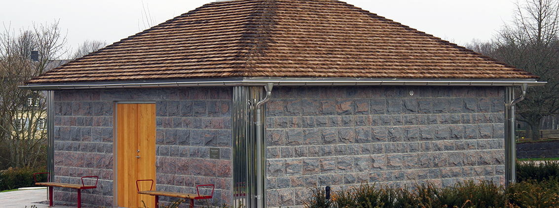 Fasad, SVENSTORP Hallandia, Klovyta, Söndrums Ängskyrkogård, Halmstad, Hallindens Granit AB