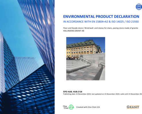 Our EPD covers Floor and facade stone, Brick-/wallstones, stones for stairs and paving stonde – made of granite.