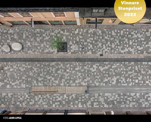 The Stone Award 2022 went to the architect office Karavan for the conformation of Södra gågatan in Uppsala.